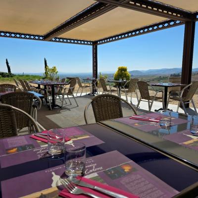 Cuisine traditionnelle simple mais efficace, d’un bon rapport qualité prix Leur vin est excellent Vue panoramique sur les vignes